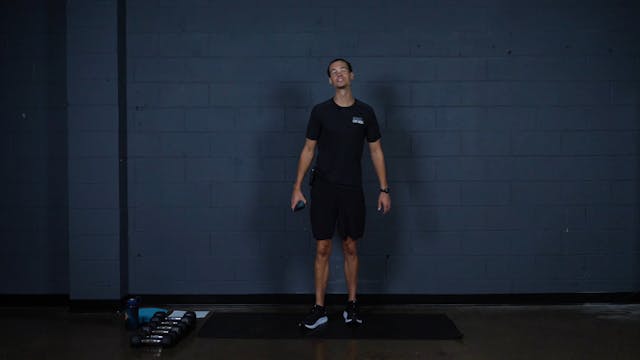 A 35 minute cardio and strength challenge focusing on burning out 3 moves... the squat, plank, tricep kickbacks. Grab light and heavy weights.